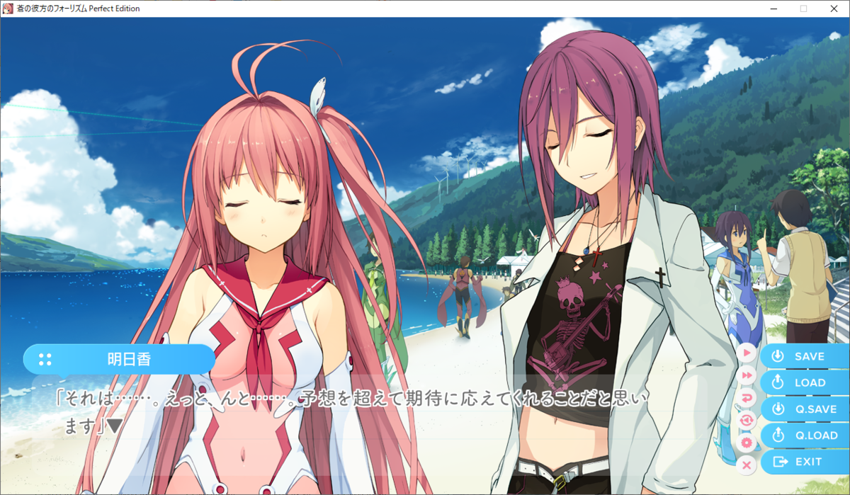 他のヒロインと比べて、キャラの掘り下げが浅いように感じました。他のルートは主人公の手によってヒロインの内面が描かれ、それを通じて成長するあるいは主人公も一緒に成長していくという展開でしたが、明日香ルートはそれが弱かった気がします。2人で向き合う時間が少なかったのが原因かなと思います。明日香ルートはいろんな登場人物が仲間となって明日香を鍛えていき明日香がどんどん成長していくので、主人公の影が弱かったように思いました。