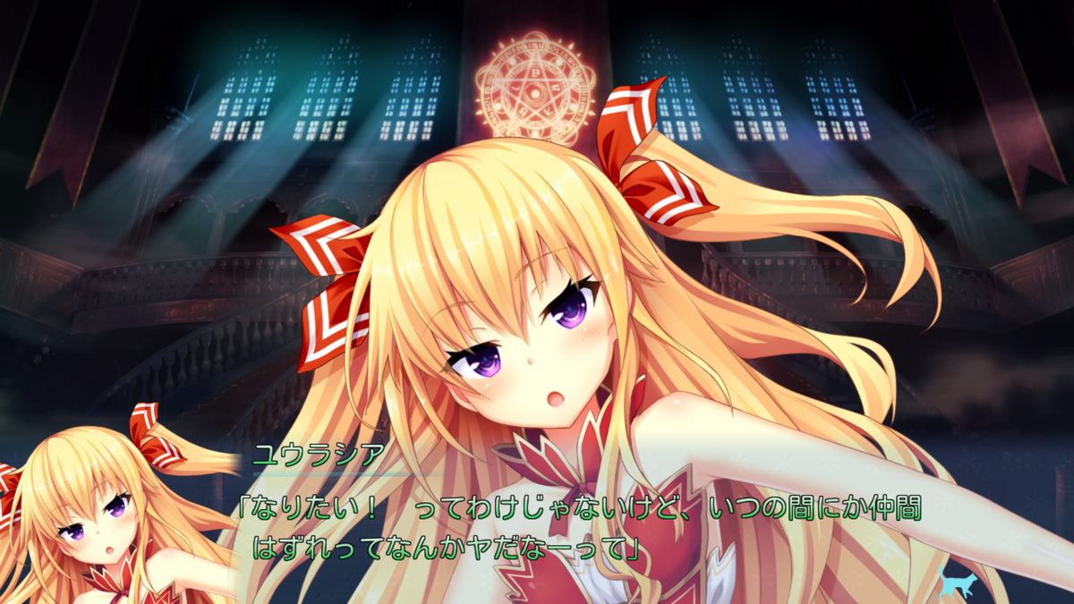 このルートをプレイして思ったことは、ユウラシアが3姉妹の中で一番人間臭いってことです。周りの目が気になって、周りと同じく、普通でいたい、そのためになりふり構わず頑張る姿が、魅力的に映ったんだと思いました。