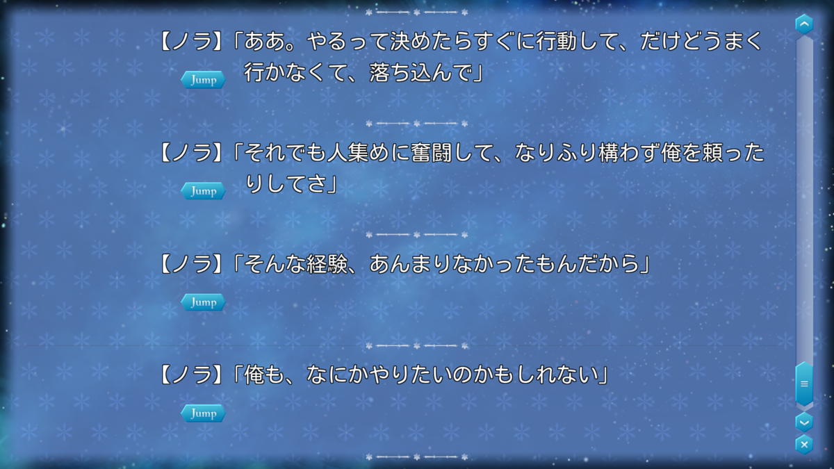 とても良かったです。僕はノラととの、ノラや井田、あっすー、田中ちゃん、そしてノブチの掛け合いが大好きなので、とても楽しかったです。ノブチ√の好きなところは、そんな彼らの友情が感じられる点とノブチがカッコイイ点です。